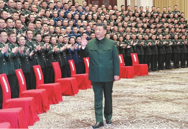 དེ་ཉིན་ཕྱི་དྲོར། ཞི་ཅིན་ཕིང་གིས་ཝུའུ་ལུའུ་མུའུ་ཆི་རུ་བཅའ་སྡོད་དཔུང་སྡེའི་ཧྲང་ཤའོ་དམག་དཔོན་ཡན་གྱི་འགོ་ཁྲིད་ལས་བྱེད་པ་དང་། གཞི་རིམ་གྱི་སྔོན་ཐོན་དཔེ་བཟང་བ་དང་ཞི་བའི་ལས་འགན་འཁུར་མཁན་ཁག་གཅིག་ལ་བྱམས་བརྩེའི་ངང་མཇལ་འཕྲད་གནང་ཞིང་། ཁོང་གིས་ཏང་ཀྲུང་དབྱང་དང་ཀྲུང་དབྱང་དམག་ཨུད་ཀྱི་ཚབ་ཞུས་ནས་ཤིན་ཅང་དུ་བཅའ་སྡོད་དཔུང་སྡེའི་དཔོན་དམག་ཡོངས་ལ་ལྷག་བསམ་ཟོལ་མེད་ཀྱི་འཚམས་འདྲི་གནང་བ་མ་ཟད་ལྷན་བཞུགས་དྲན་རྟེན་སྐུ་པར་ཡང་བསྐྱོན་པ་རེད།